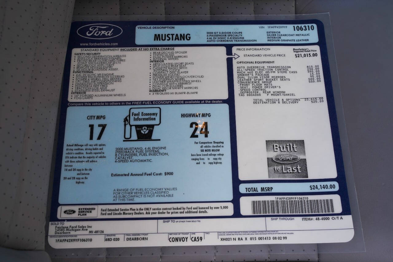Vehicle Inquiry for 2000 Ford Mustang GT